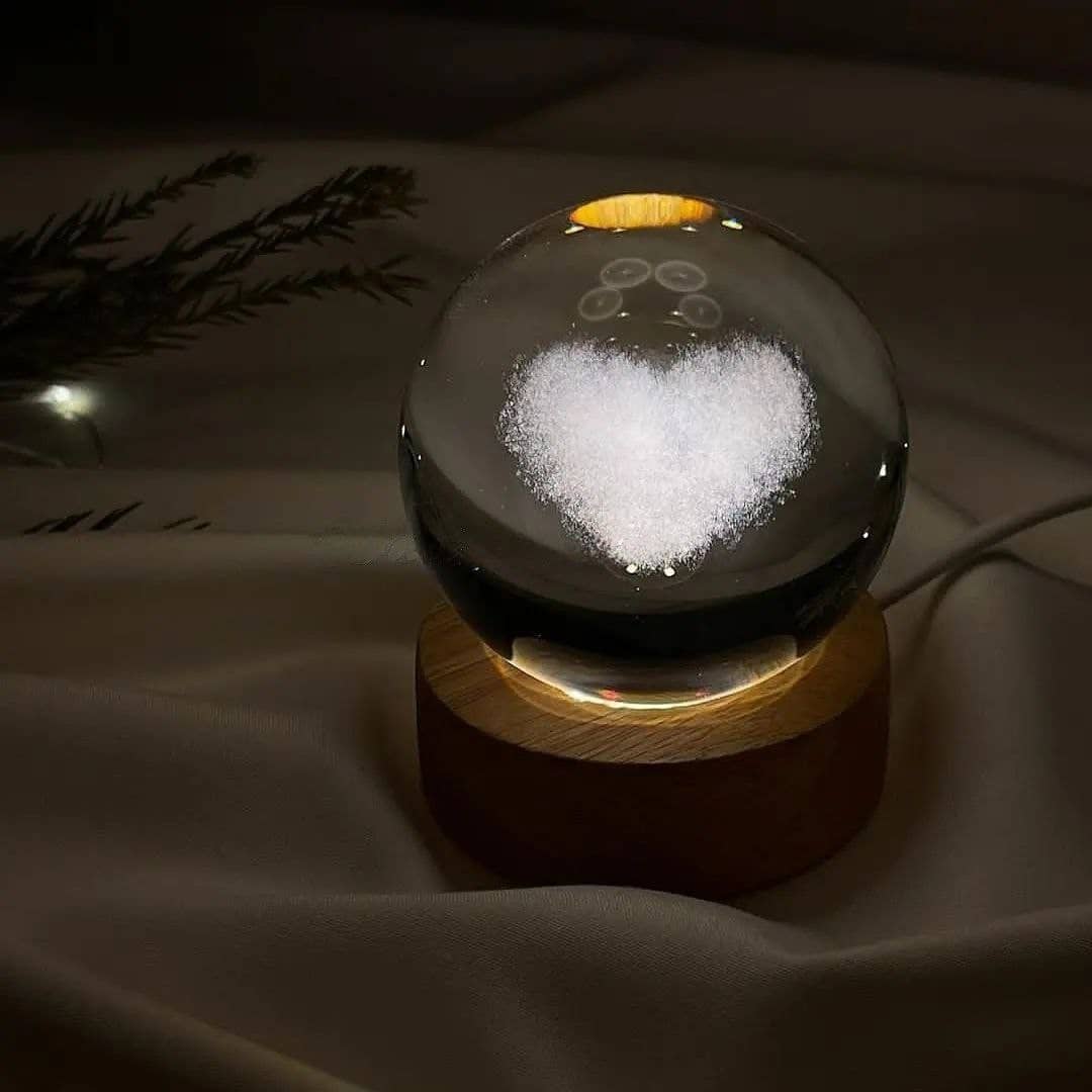 چراغ خواب گوی کریستالی با پایه چوبی طرح قلبناموجود