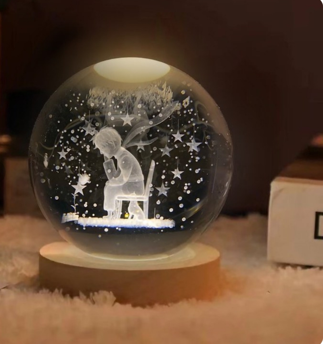 خرید چراغ خواب گوی کریستالی طرح شازده کوچولو
