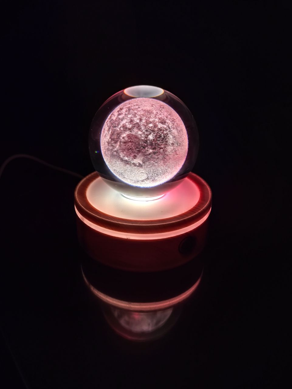 چراغ خواب گوی کریستالی چرخان چند رنگ با پایه لمسی مدل ماه
