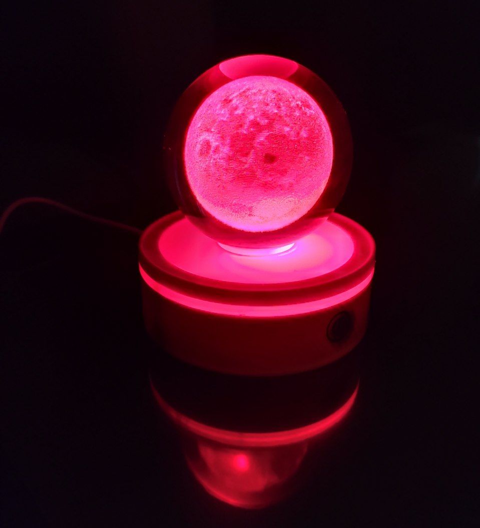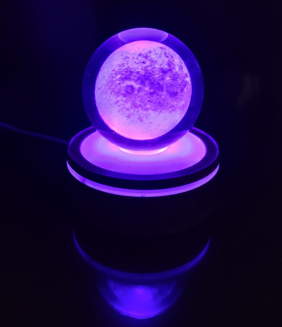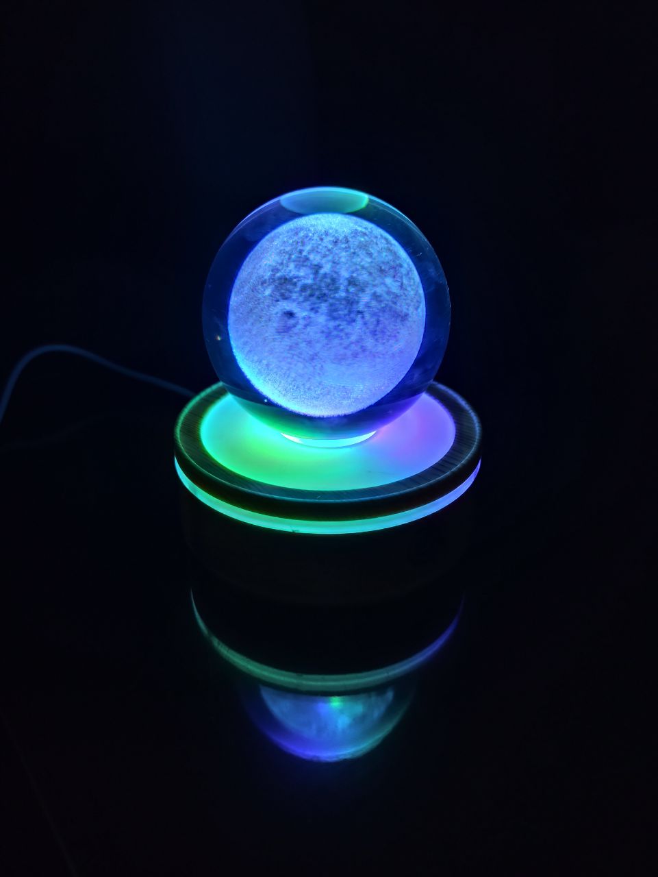 چراغ خواب گوی کریستالی چرخان چند رنگ با پایه لمسی مدل ماه یک انتخاب خاص و بسیار چشمنواز برای دکوراسیون و نورپردازی فضاست. داخل این گوی کریستالی، طرح سهبعدی و دقیق ماه حکاکی شده که با روشن شدن چراغ، جلوهای رویایی و آرامشبخش ایجاد میکند.
