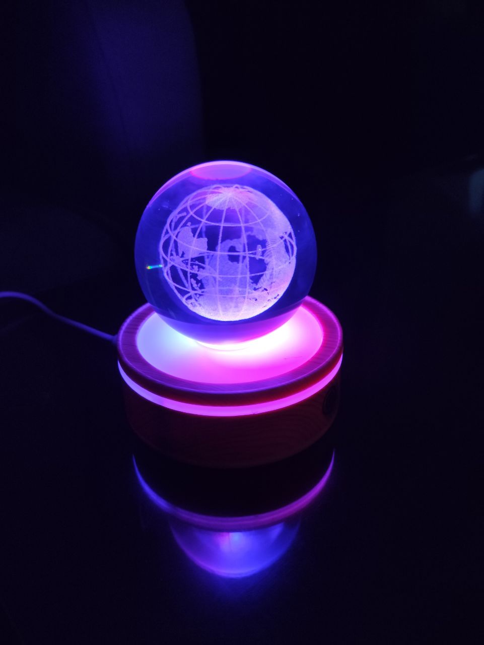 چراغ خواب گوی کریستالی چرخان چند رنگ با پایه لمسی مدل کره زمین