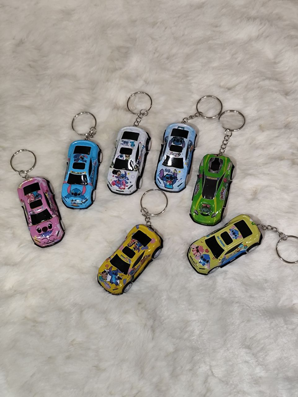 جاکلیدی و جاسوییچی ماشین مسابقهای و استیچ یک اکسسوری فانتزی و جذاب با طراحی خاص و دوستداشتنی است که ترکیب هیجان ماشین مسابقهای و شخصیت کارتونی محبوب را در کنار هم قرار داده است. این مدل انتخابی عالی برای علاقهمندان به طرحهای اسپرت و فانتزی بوده و جلوهای خاص به کلید یا کیف شما میدهد.