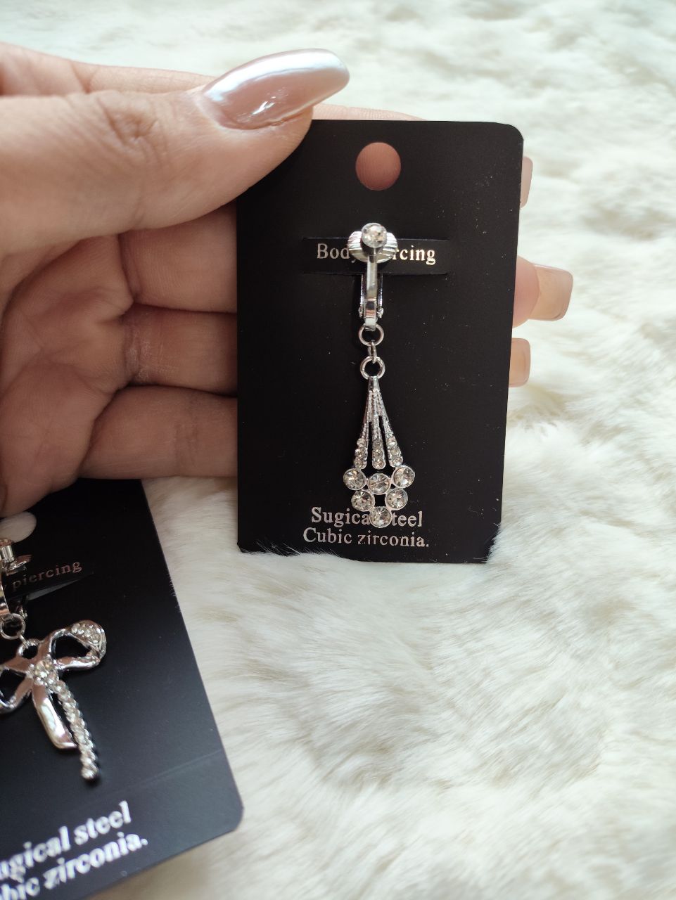 ویژگی: بدون نیاز به سوراخ کردن ناف،بصورت گیره ای به بالای ناف وصل میشود
